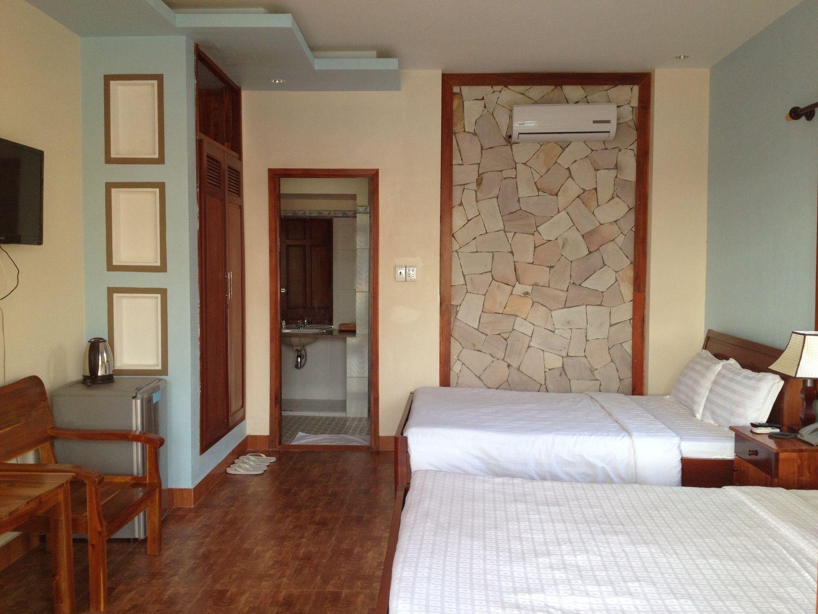 Bed types: Double room has 01 bed of 1.8 or 2m, twin room has two beds of 1.4m or 1.6m + 1.2m, triple room for 3 pax has 2 beds of 1.6m + 1.2m.